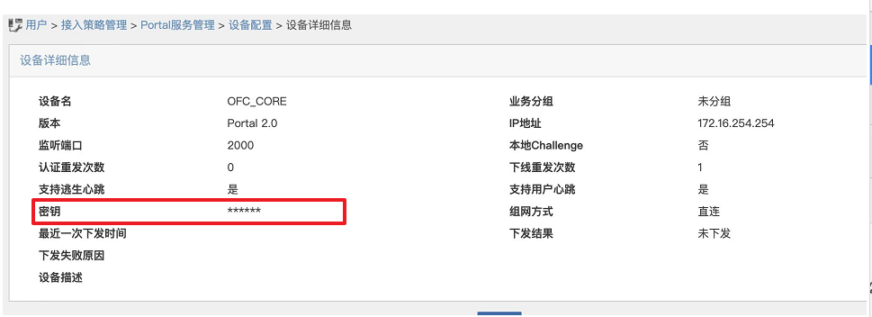 这个密码就是你再网络设备上指定portal server的时候后面跟的密码