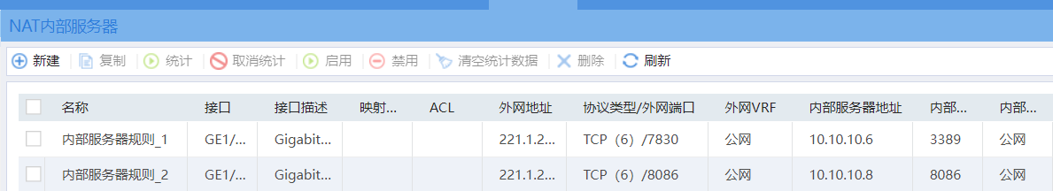 1、在内网接口开启NAT回流功能,参考命令如下: