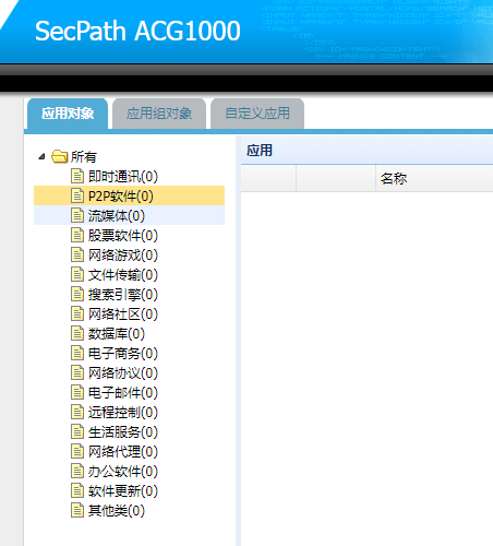 登录web端查看配置,发现对象管理中应用分类存在,里面的应用对象都没了,导致策略不起作用,而其他功能配置都在。