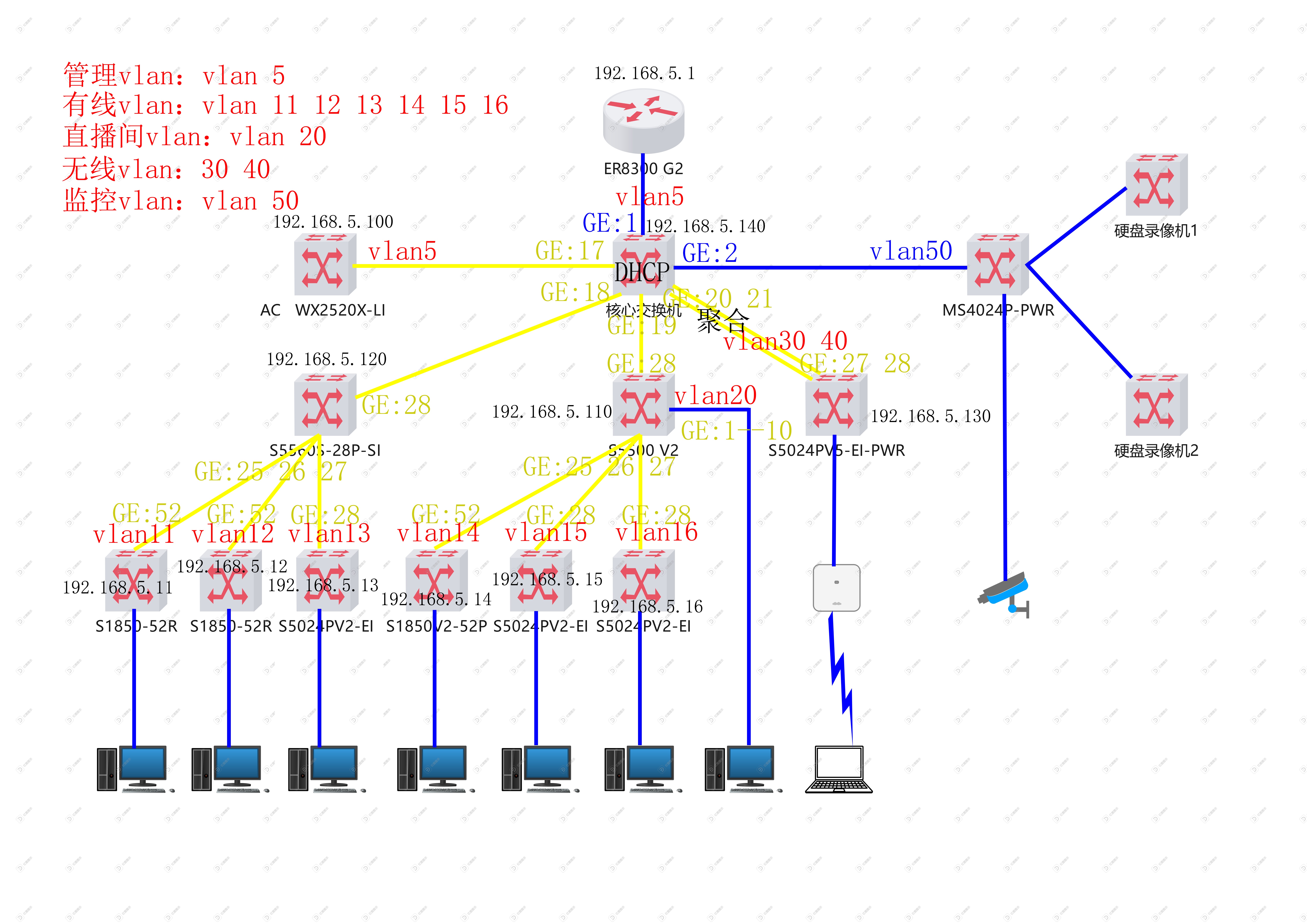 接入交换机和汇聚交换机之间的互联端口起Trunk