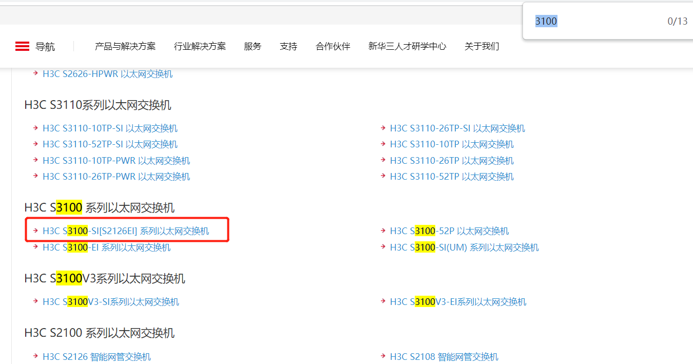 手头产品描述:交换机《数据通讯-H3C S3100-52TP-SI》。想去文档中心下载产品手册,但在S3100目录下不知道是哪个才是,没有一模一样的选项。