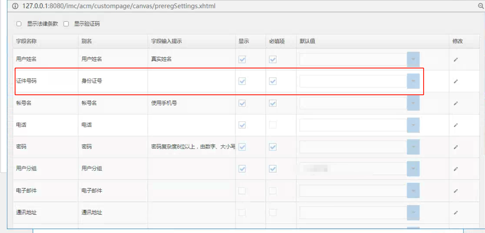 为何portal认证的用户预注册页面的证件号码无法关闭,领导觉得注册页面填写信息太多太麻烦了,只想要填账号,密码,邮箱,部门就行