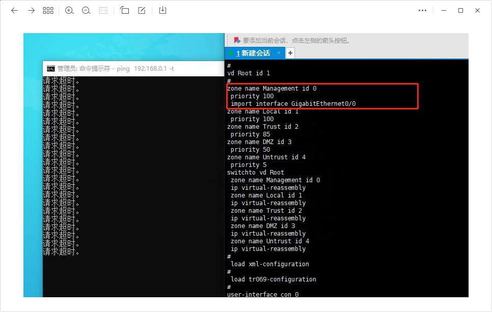 能收到mac,ping不通,接口加到Management域,放通了Management到Local的策略