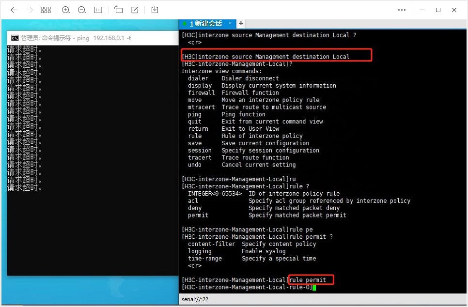 能收到mac,ping不通,放通了Management到Local的策略