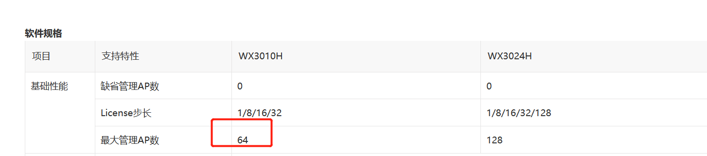 基础性能 | 缺省管理AP数 | 0 | 0 |