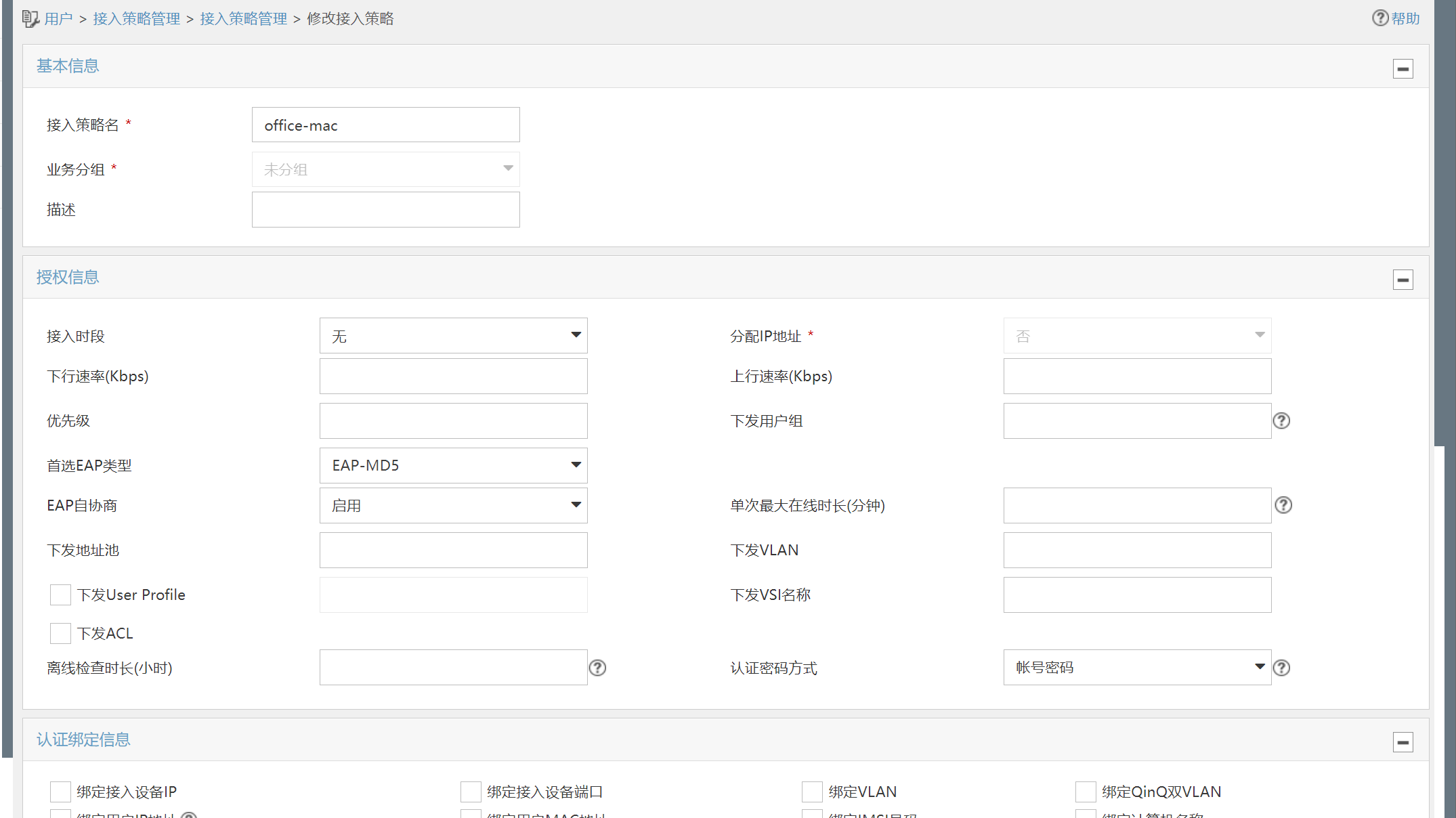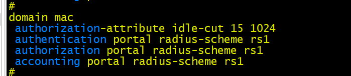 本地转发模式,配合IMC做mac地址认证,终端获取不到地址,imc接入日志也没有报错,一样的radius,一样的domain域配置,portal认证正常,改成mac认证就不行,是少加了什么配置吗