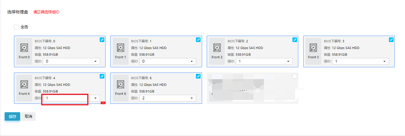 应该写id为2 , 组1 有3块硬盘时创建是不成功的