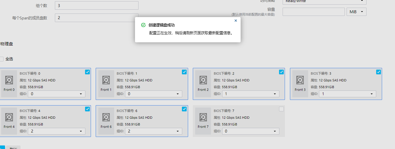 一般LSI卡涉及span,建议确认机器型号和阵列卡型号,最好配置界面截图