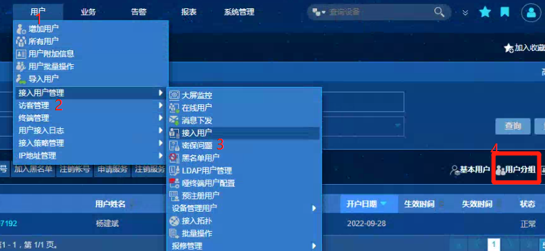 1、顶部菜单栏-用户-接入用户管理-接入用户 右边有个用户分组 点进去新增分组名称就行