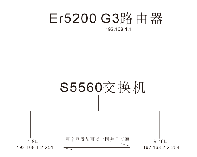 本来只有一台5200,一个网段,现在发现ip不够用了,所以看网上说买个3层交换机回来做分段租网,现在接了三层交换机,但是不会配置,看了网上各种说法,自己尝试在交换机web配置了2个分段,wlan1 192.168.1.1 ,wlan100 192.2.1,结果电脑插9口上,不能自动获取ip,手动输入ip192.168.2.3,但是不能上网,整不明白,5200已经创建了192.168.2.1的网关了,交换机还是不会配置,看网上一堆 回路啊 nat啊,越看越不懂,有没有大神教一下怎么配置交换机另外一个网段可以上网,而且192.168.1.1 192.168.2.1两个网段电脑可以互相访问。求助。。。