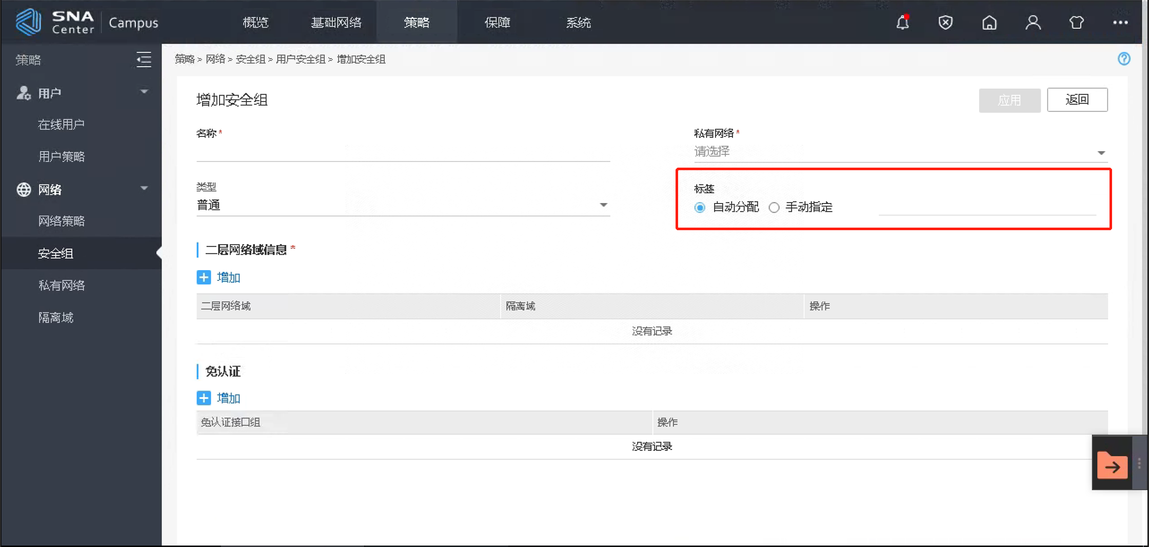 对应安全组vlan id/微分段id