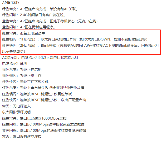 新开封的6个H3C WA2610H面板AP,有2常亮绿灯,其中有4个AP的SYS常亮红灯,请问这4个SYS亮红灯的我应该怎样解决呢?