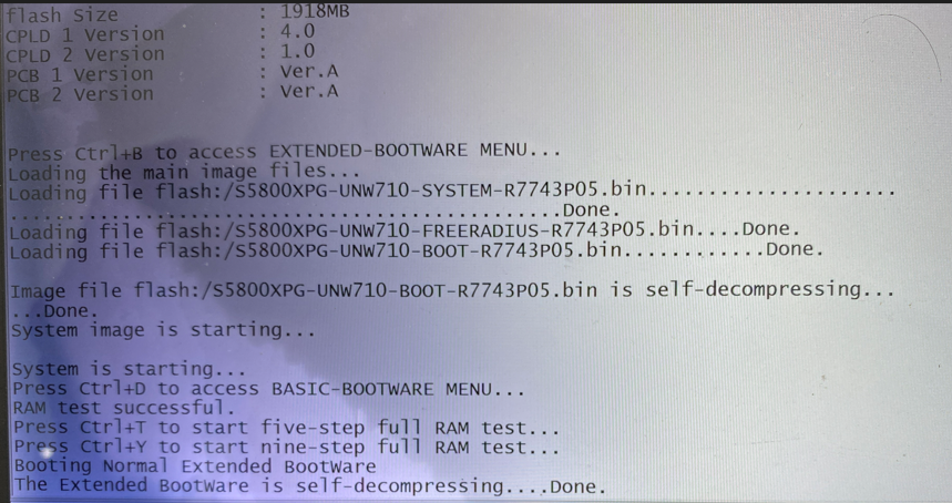 交换机突然网口灯都灭了,拔掉电源之后重启一直在打印信息,进不了命令行