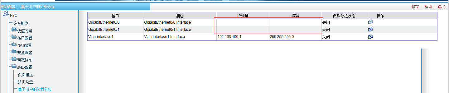 MSR26-00基于用户的负载分担 点击进入后,右边显示的GE0/0和GE0/1都没有IP地址(我是PPPOE)