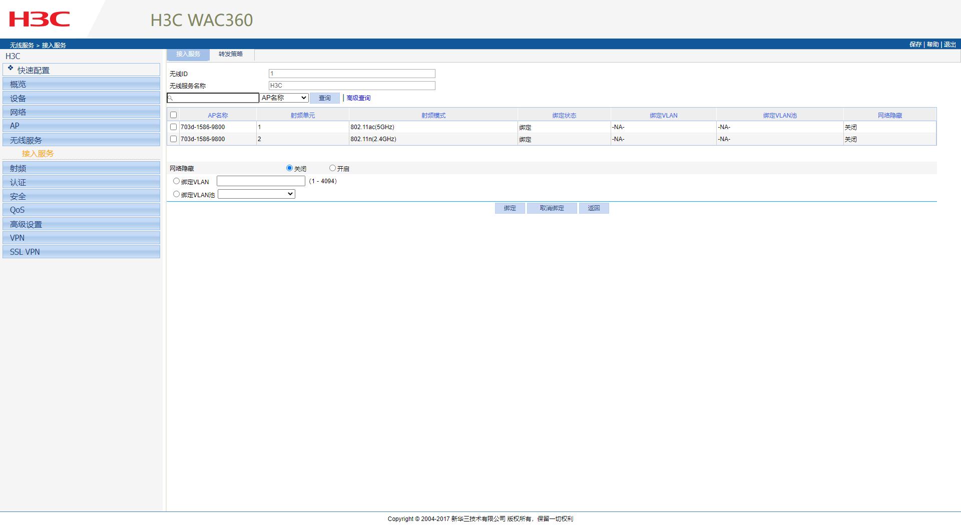 2、剩下的就是配置服务模板,然后把服务模板绑定给AP就可以了