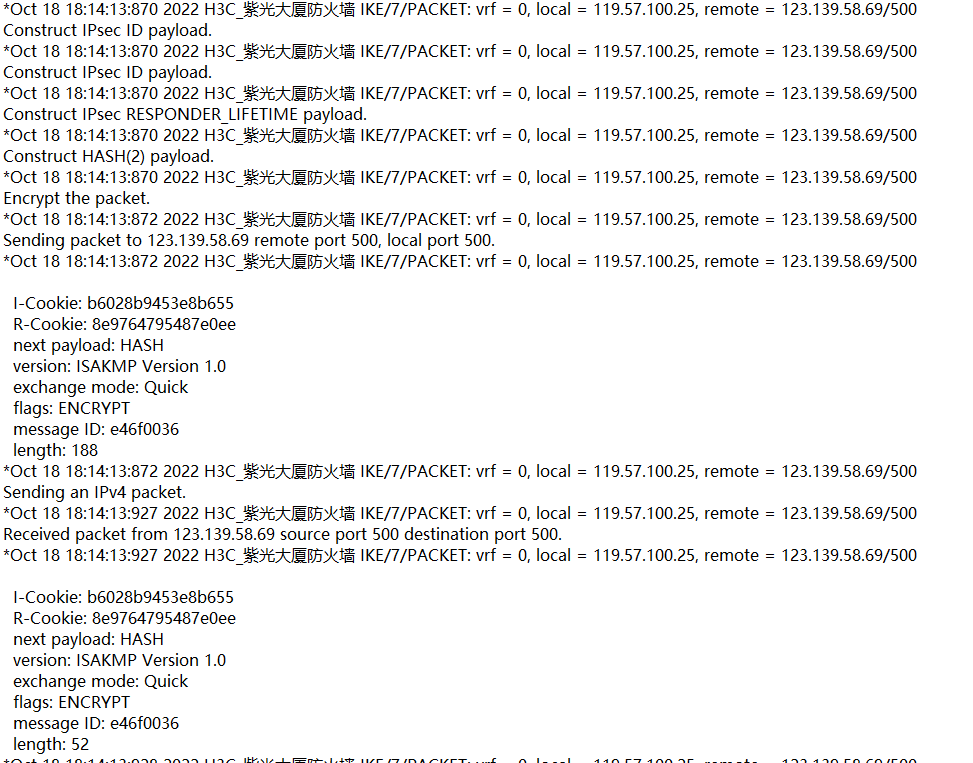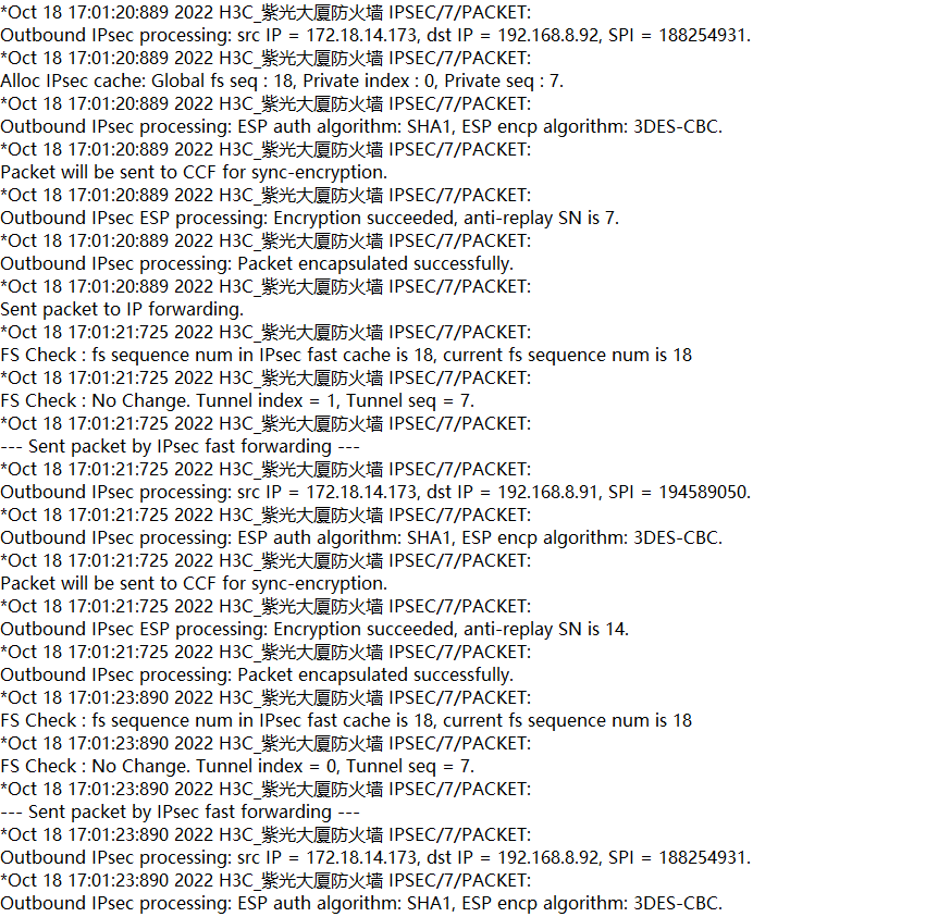 如果display ike sa和display ipsec sa显示信息和状态正常则代表ipsec隧道已经建立,如果业务不通: