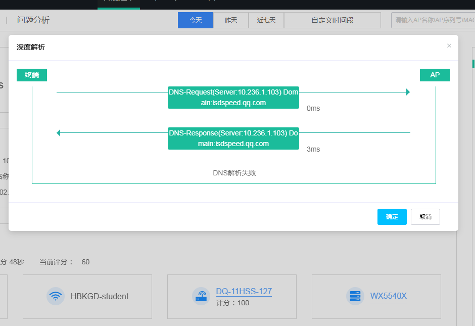 云简网络上分析终端连接记录,出现问题次数最多的是DNS无法解析的问题,是否是导致终端上网卡的原因。这种情况原因大概是什么