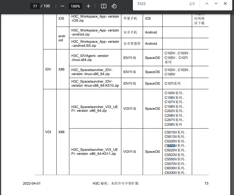 哪个workspace版本适配VDI-C5323V终端,官网没找到相关配套表