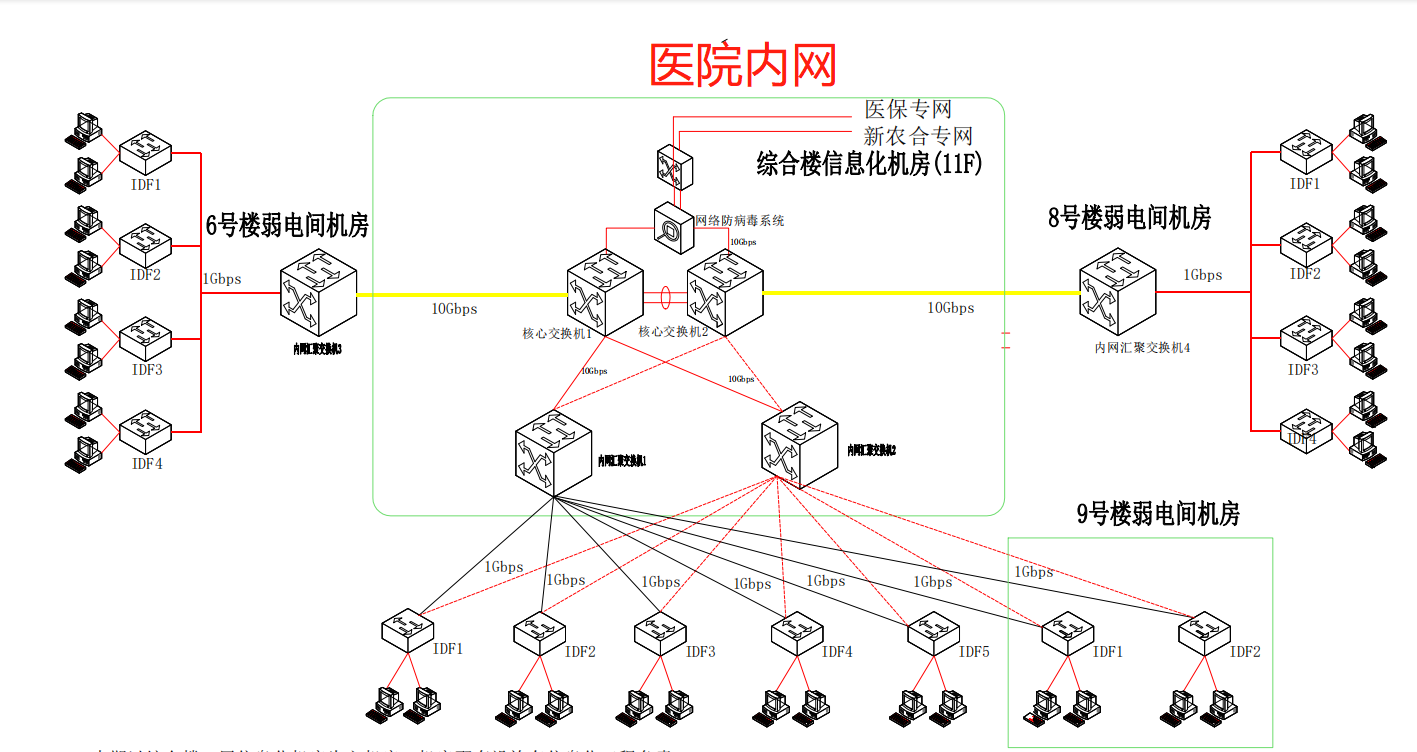 以下是医院的设备网和内网拓扑 有哪位大佬做过这类项目的 给提供一下具体详细的思路吗 给采纳 新手不知道如何下手 跪求各位大佬了 感谢!!!!!