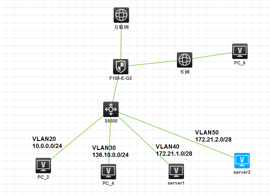 现在需要VLAN40,VLAN50的服务器可以同时访问互联网和专网下的PC_6