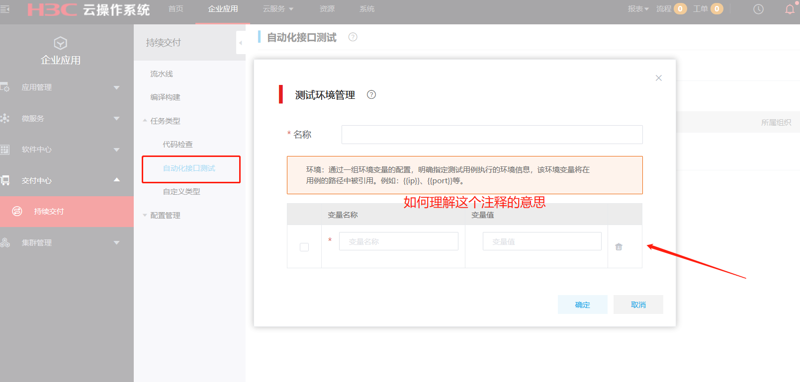 cloudos 5.0 交付中心的自动化接口测试如何使用,特别是测试环境如何配置参数
