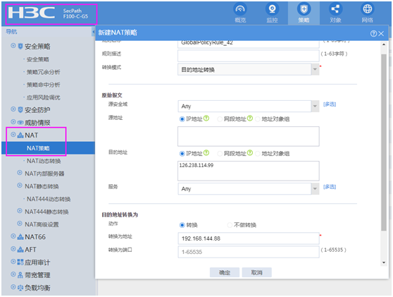 核心问题,我这么配置完策略,能否通过外网访问到我内网的 192.168.144.88服务器 ? 当我访问公网126.238.114.99地址的时候,能否转换到我内网192.168.144.88上?