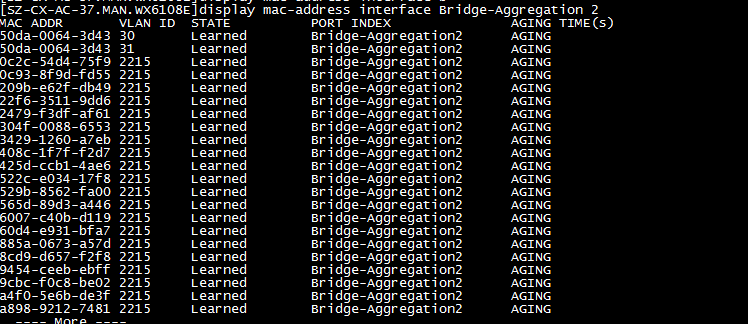 AC机框上面这2个口连接着相对用的核心,为什么业务地址段的MAC 地址 没有从这2个口上来,是从机框上面的聚合口上来