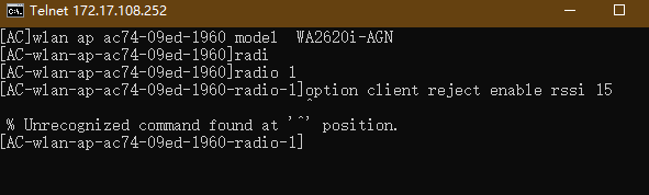 在命令行输入option client reject enable rssi 15后报错并无法执行,请问是什么原因