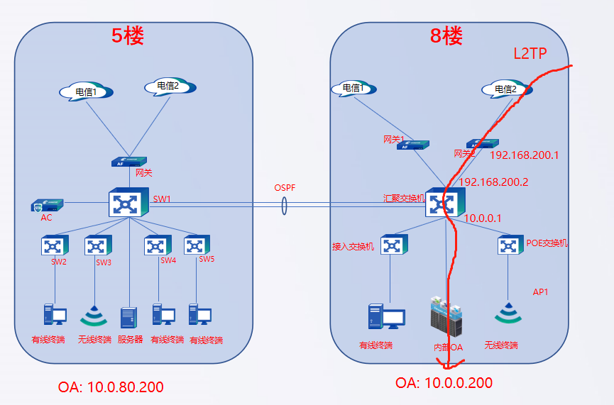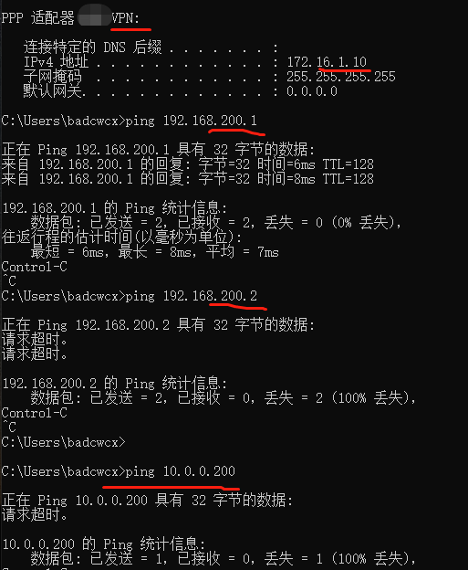 我想通过客户端与ER5100 G2 建立L2TP VPN,远程访问公司内部的服务器10.0.0.200,当前客户端与LNS隧道已经建立成功,我远程电脑可以ping通H3C ER5100G2 的LAN口地址 192.168.200.1,192.168.200.2(三层交换机)也ping不通,
