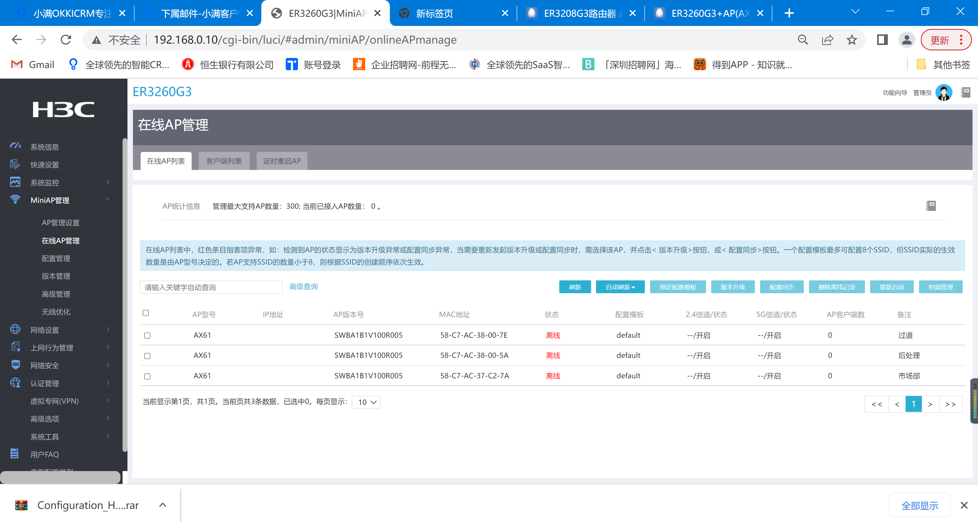 ER3260G3,AP离线,但还是能WIFI上网。升级到 Release 0126. ER3260G3+MINI AP AX61 3个,“在线AP管理”页面都是离线状态,但是无线wifi能用。 升级到 Release 0126了,有线网络是VLAN1,AP管理的是VLAN2,poe交换机无管理,ER路由器物理lan2口的,接口pvid是1,勾选了ap版本同步升级。