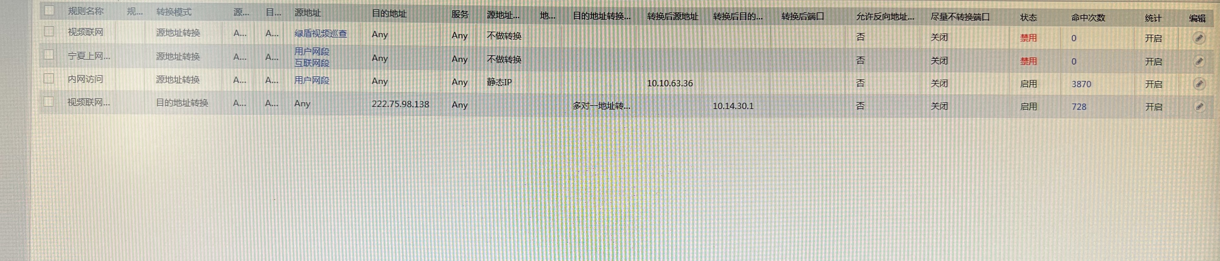 内网ip10.10.64.0/24 访问 222.75.98.138时,会把源地址转换成10.10.63.36,目的地之会转换成10.14.30.1,这个配置怎样做?后两条做的对吗