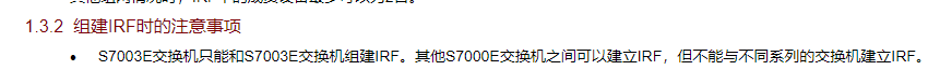 S7003E交换机只能和S7003E交换机组建IRF。其他S7000E交换机之间可以建立IRF,但不能与不同系列的交换机建立IRF。