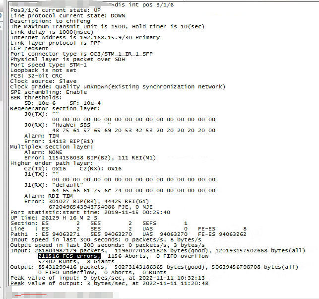两个路由器经过SDH传输设备使用POS口互联,有一端物理UP协议down,另一端都是UP,可能是什么原因?