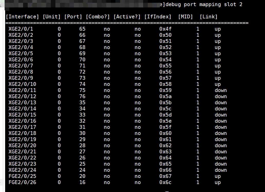 物理面板端口编号和内部端口号的对应关系