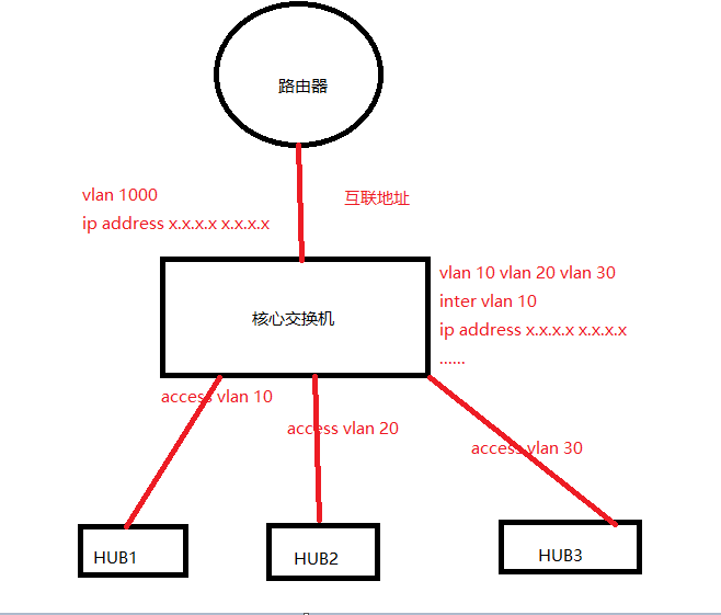 亲们好,我想用家用路由器接三层核心交换机应当怎么设置,核心上接三个傻瓜交换机带不同的VLAN,VLAN间有互通需求。