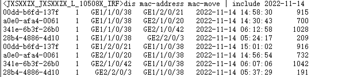 2022-11-12突然有很多地方反映无法上网,去现场排查发现他们的接入层交换机因开启STP,导致上行端口堵塞无法上网,将STP关闭后正常,考虑是否环路了。。但是不知道该如何排查。。。百度了很久都没信息,就查到了这个命令。。。。但是不太能看懂