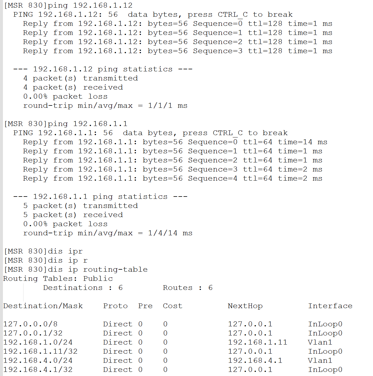 组网如图,测试结果如下,现在PC无法PING通192.168.1.1,请大拿指导一下,谢谢!