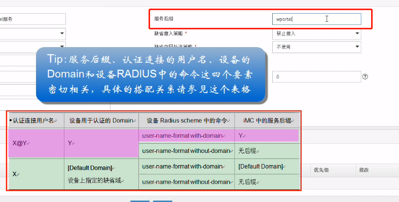 如果是做了认证那么需要在认证服务器配置不携带domain,同时交换机相应的radius scheme下配置user-name-format without-domain
