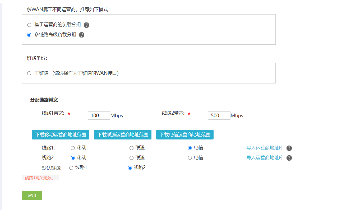 各位大佬请教一下就是我路由器的话现在是选择高级负载分担模式,但是他提示的是网关无效是什么情况