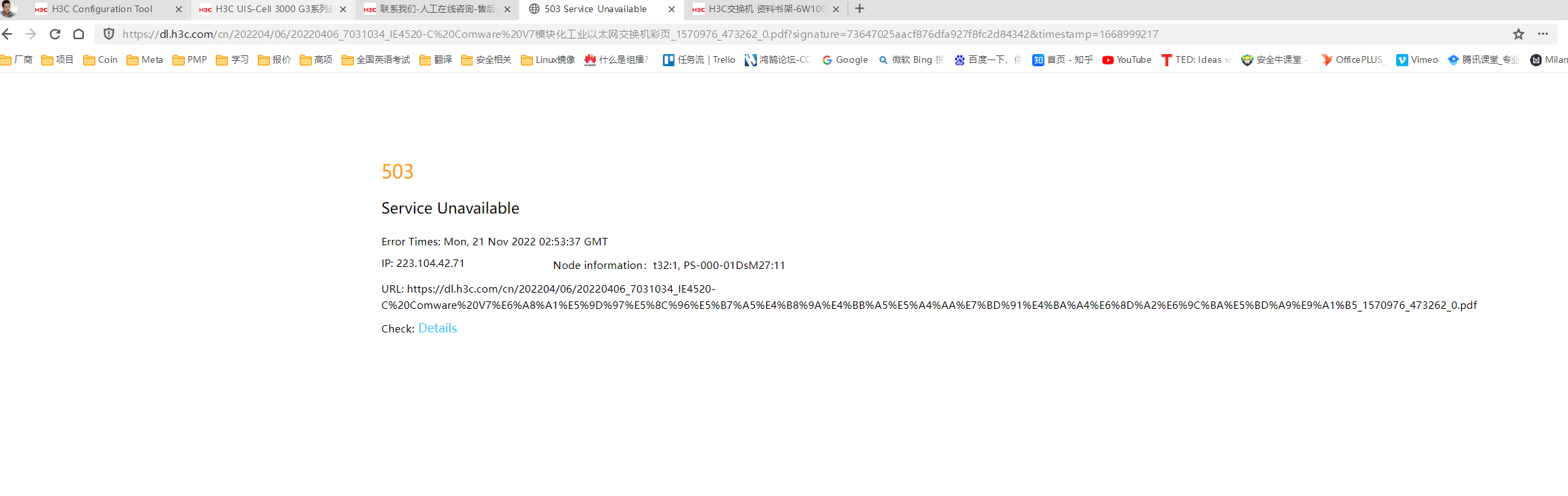 华三官网交换机彩页不能下载,用公司网和热点都不行。坐标:北京,你们有这情况吗?