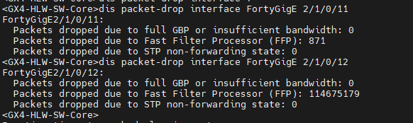 packet-drop中的FFP表示是ACL过滤掉的报文,堆叠口的过滤是系统实现,要过滤掉不相关报文,这些报文不用到对框去处理,因此需要过滤掉,不用去关注,不影响实际业务。