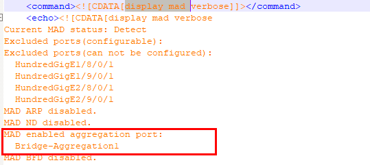 display mad ver显示如下,lacp mad上行设备是H3C设备,且互联都为动态聚合,mad enable也开启了。为什么lacp mad没有起来。