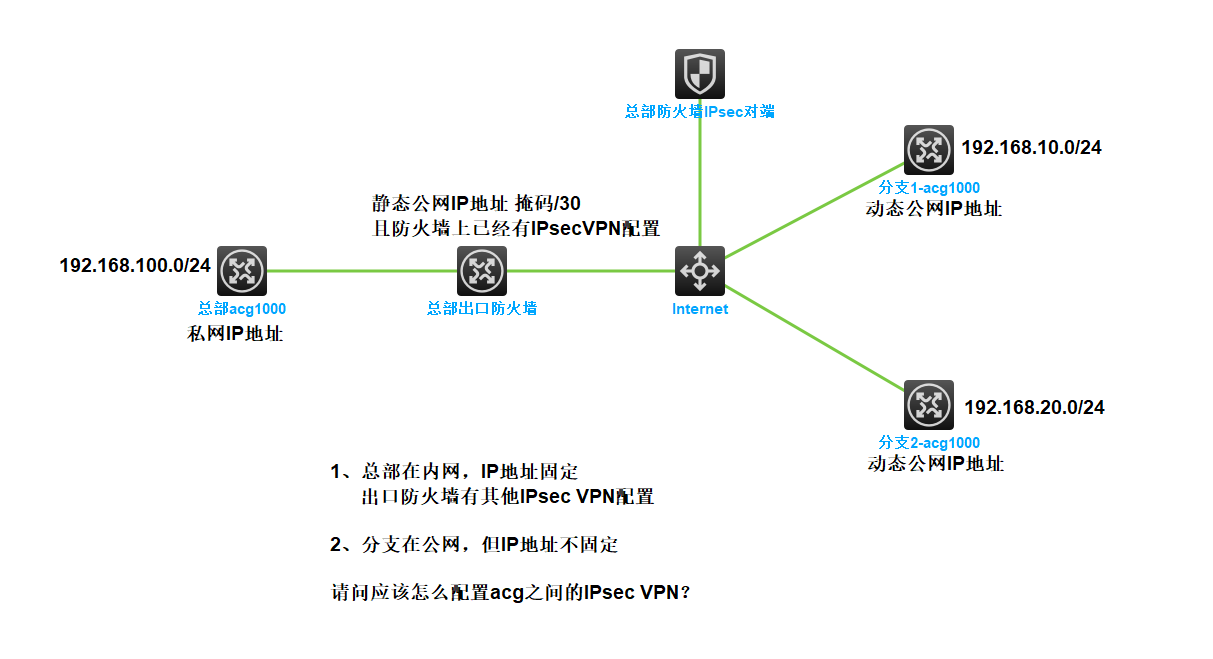 请问图中的场景能建立IPsec VPN么?应该怎么配置呢?大概思路是怎样的?