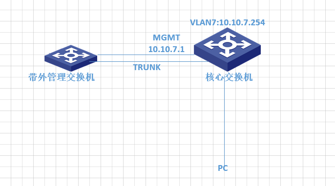 核心交换机起网段VLAN7:10.10.7.254,带外管理接口G1/0/0/0配置10.10.7.1。
