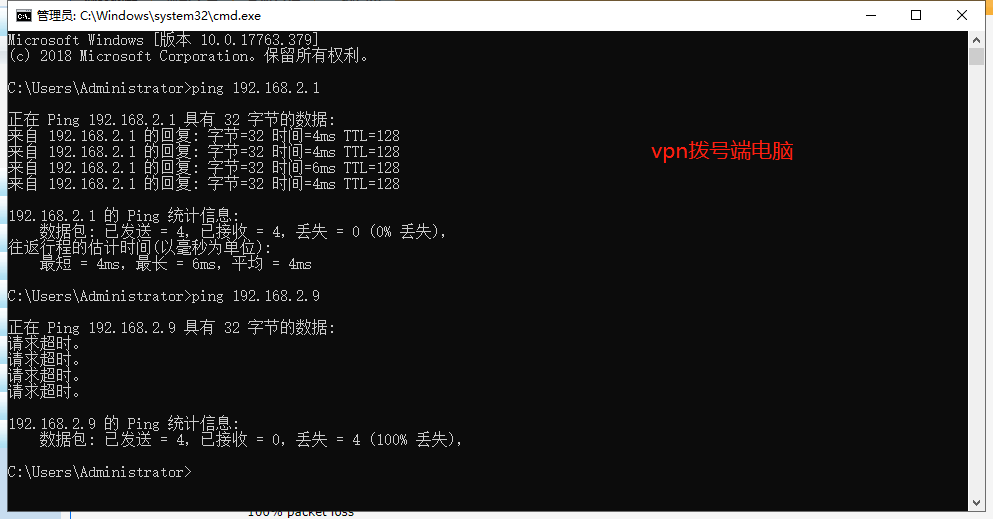 问题二:vpn拨号端电脑只能PING通远端路由器地址,不能PING通远端局域网电脑