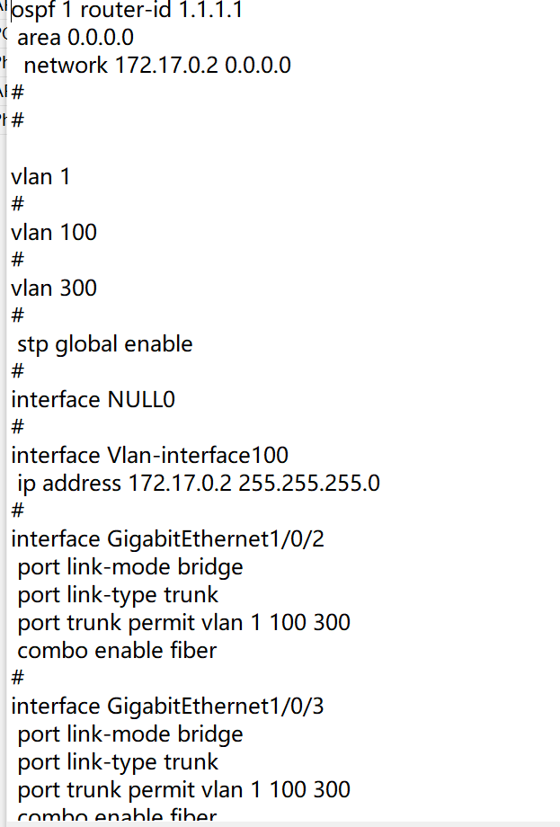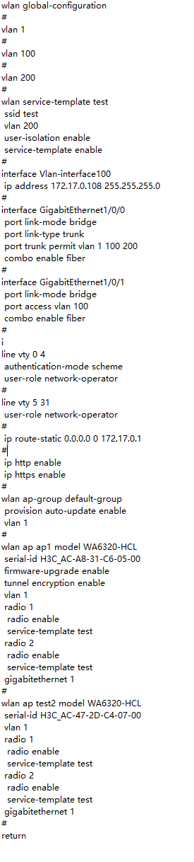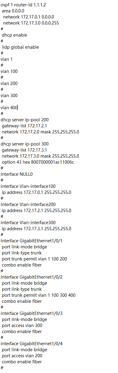 S1和S2通过OSPF动态路由组网,DHCP和网关都在S1上,VLAN100是各个设备的管理地址,VLAN300是无线的业务VLAN,VLAN200是AP管理VLAN,AP能够注册上线,但是客户端连不上WIFI