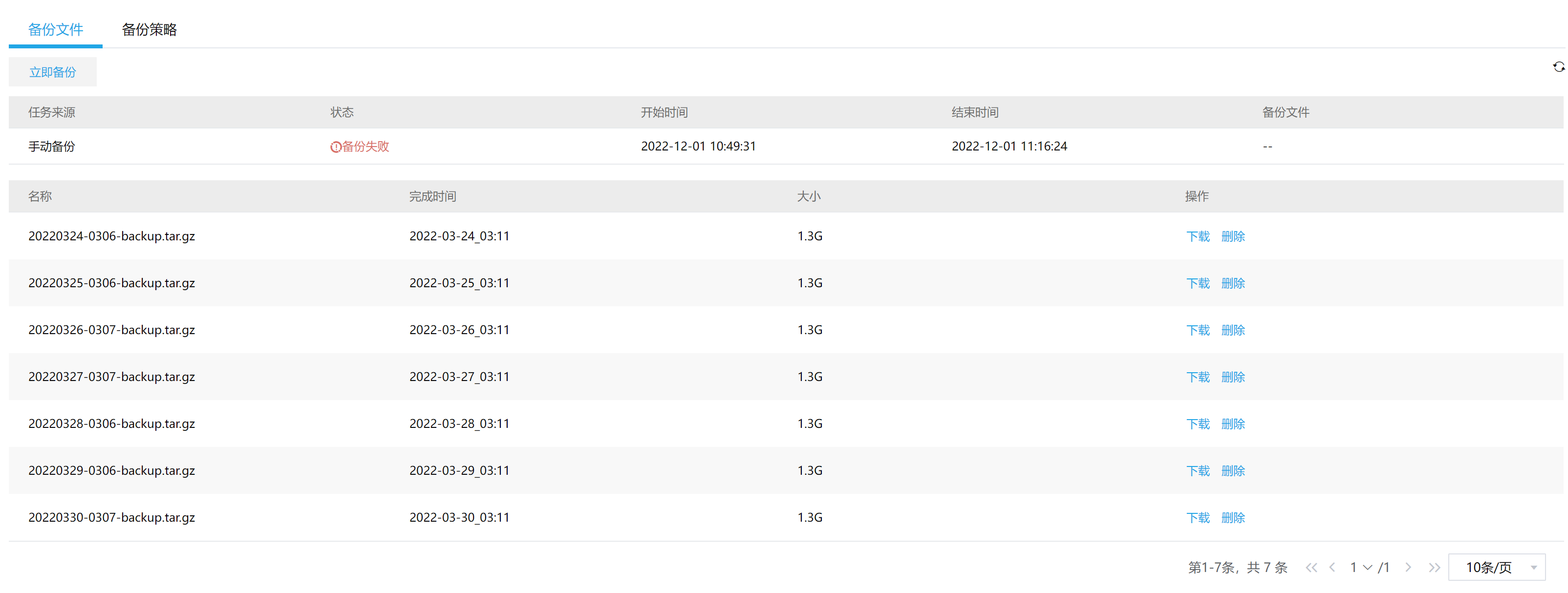 点了备份一直不成功,上次备份成功是在3月份,我看后台磁盘还是够的呀