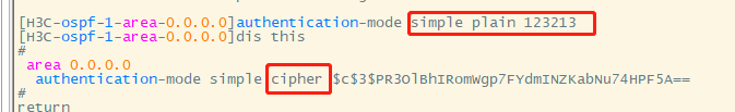 ospf区域认证中密文认证怎么配置不了?正确配置方法是怎样的? 要密文方式的,明文方式的就不要说了