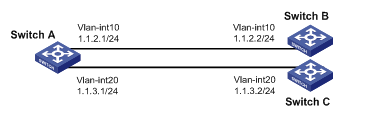 [SwitchC-Vlan-interface20] ip address 1.1.3.2 24