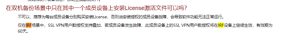 防火墙irf,license不会共享,要两份的。